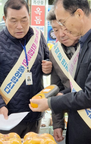 이날 지도·단속은 과일 판매상인들을 대상으로 상품 만감류 출하에 대해 계도하고 당도 11.5 브릭스 이상 등 품질기준 준수 여부를 점검했다