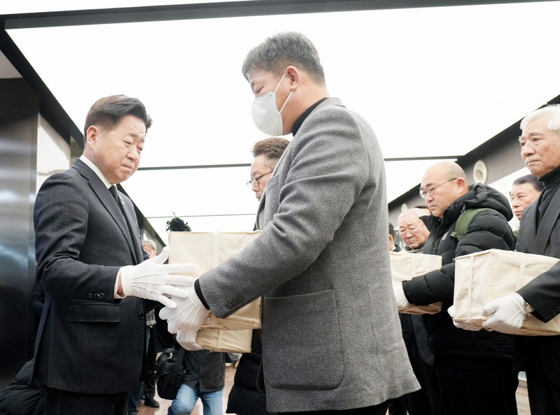 이날 제주국제공항에서는 오영훈 지사가 직접 유해를 영접하고, 70여 년 만에 고향 제주로 돌아온 희생자들의 넋을 기리며 유족들을 위로했다.