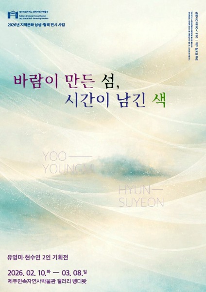 제주민속자연사박물관이 오는 10일부터 3월 8일까지 갤러리 벵디왓에서 유영미·현수연 작가의 ‘바람이 만든 섬, 시간이 남긴 색’ 전을 개최한다.