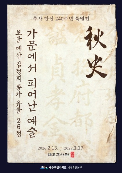 제주도 세계유산본부, 13일 ‘추사, 가문에서 피어난 예술’ 특별전 개최