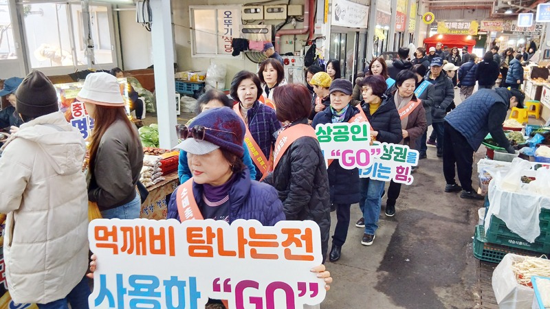 제주도가 설 명절을 앞두고 지역 상권 소비 활성화를 위해 12일, 제주시 민속오일장에서 ‘소비촉진 캠페인’을 전개했다.