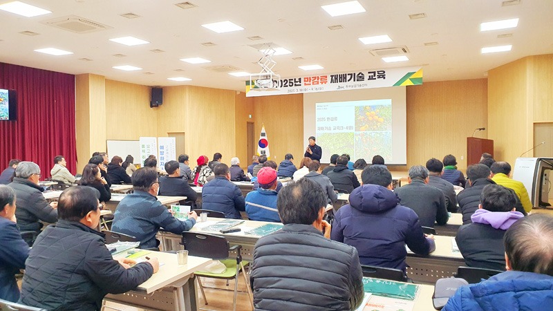 제주도 동부농업기술센터가 올해 감귤 재배기술 교육을 2개 과정 4개반 320명 규모로 확대 운영한다. 이는 기존 140명에서 2배 이상 늘어난 규모다.