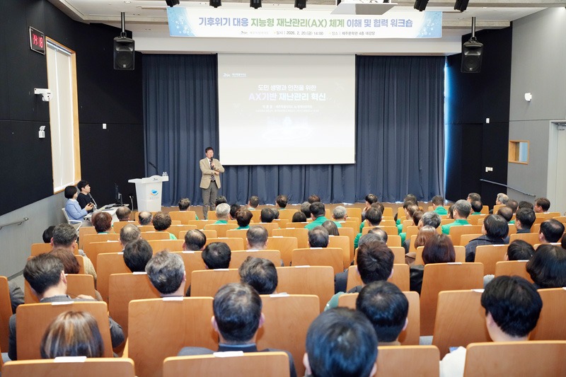 제주도는 20일 오후, 제주문학관 대강당에서 ‘기후위기 대응 지능형 재난관리(AX) 체계 이해 및 협력 워크숍’을 개최했다.