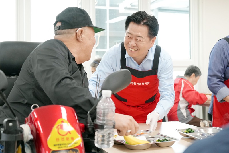 이날 경로식당에는 지역 어르신 170여 명이 자리했다. 오영훈 지사는 배식봉사에 직접 참여해 지역사회 어르신 돌봄 현장을 직접 챙기며 어르신 한 분 한 분의 건강과 안부를 세심히 살폈다.