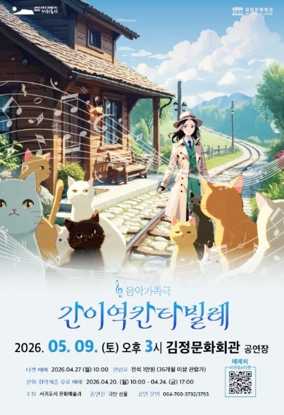제주 서귀포시가 가정의 달 5월을 맞아 온 가족이 함께 즐길 수 있는 음악 가족극 ‘간이역 칸타빌레’를 오는 5월 9일 김정문화회관에서 개최한다.