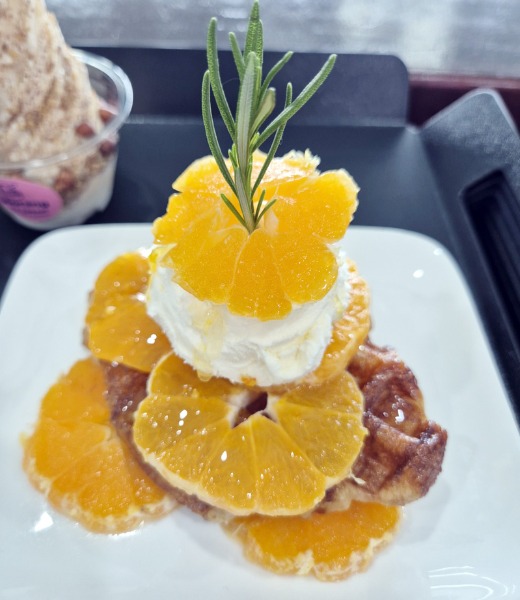 특히 우도땅콩으로 직접 만든 우도땅콩 샌드베이글은 고소하고 달콤하며 제주한라봉 감귤 크로플은 제주 감귤과 한라봉이 토핑되어 상큼한 것이 이율ㄹ 살펴보니 코로플 자체가 눅눅하지 않고 바삭하게 구워졌고 젤라또와 땅콩의 조합이 기가 막히다. 그래서 ‘카페 우도랑’을 찾는 외국인들에게 인기 있는 메뉴다.