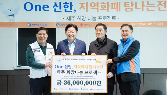 제주도가 설 명절을 앞두고 금융권·구호기관과 손잡고 복지 사각지대 700가구에 3천600만원을 지원한다. 이는 기부금을 전통시장 상품권과 지역화폐로 전달해 취약계층 지원과 골목상권 활성화를 동시에 꾀하는 '민·관 협력형 상생 모델'이다.제주도와 제주은행, 신한금융그룹, 대한적십자사 제주지사는 13일 오후, 제주동문시장에서 설맞이 ‘ONE 신한 지역화폐 제주 희망 나눔 프로젝트’를 진행했다.▲ 제주도와 제주은행, 신한금융그룹, 대한적십자사 제주지사가 13일 설맞이 ‘ONE 신한 지역화폐 제주 희망 나눔 프로젝트’를 ...