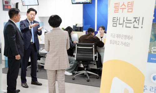 제주도가 지역화폐 ‘탐나는전’을 관광객 소비와 지역 상권을 잇는 핵심 수단으로 집중 육성한다.제주은행 공항지점 데이터 분석 결과, 올해 월평균 발급 건수는 전년 대비 215% 급증했다. 특히 2월 한 달간 적립률을 20%로 상향하자 카드 발급 건수가 1월 647건에서 2월 1천592건으로 약 146% 뛰었다.▲ 오영훈 지사가 23일 제주은행 공항점 찾아 탐나는전 발급 현황을 점검하고 직원을 격려하고 있다.특히 탐나는전 앱 가입자 28만 명 중 약 21.4%가 관광객이며, 2월 한달 사용액의 7.2%가 관광객이 소비한 것 분...
