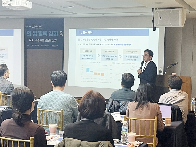첫날인 5일, ‘5극3특 국정과제와 연계한 특별자치시도 대응·발전 방안'을 주제로 윤원수 제주연구원 도민행복연구실장의 강연이 진행됐고 이어 기관 간 현안을 공유하고 협조체계를 구축하기 위한 상생협력추진단 회의를 연다.