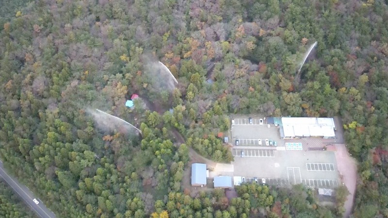산불소화시설은 산불 발생 시 진화 헬기나 진화차 등이 도착하기 전 초기 확산을 억제함으로써 피해를 최소화하고 산림휴양시설과 이용객의 안전을 보호하기 위해 설치하는 장비다.