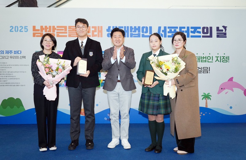 이날 행사에는 남방큰돌고래 생태법인 지정을 위해 힘쓴 공로자에 대한 시상식도 진행됐으며 서포터즈 시상식에는 제주국제학교 서포터즈 ‘화랑 제주’와 제주 중·고생 동아리 ‘블루스캔’가 우수 서포터즈로 선정됐다.