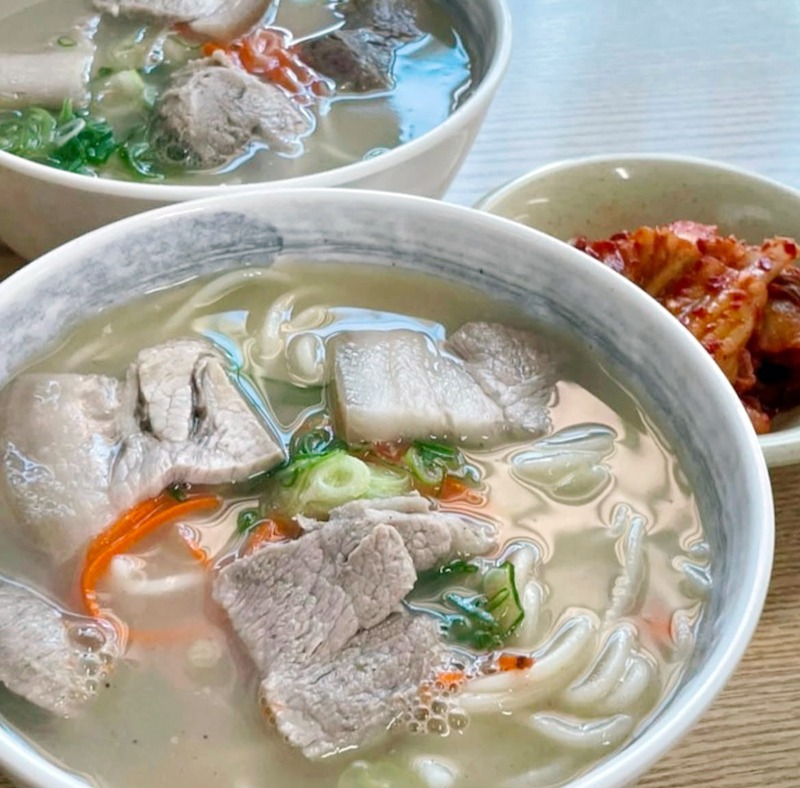 제주의 대표적인 음식 중 하나로 고기국수를 꼽을 수 있을 것이다. ‘국수문화거리’가 있을 만큼 제주의 대표 소울푸드이다. 돼지고기와 돼지 뼈를 우린 맑은 육수에 돼지고기가 고명으로 들어가 제주어로 '베지근하다(고기 따위를 푹 끓인 국물이 구미가 당길 정도로 맛있다)'라는 의미가 딱 들어맞는 음식이다.