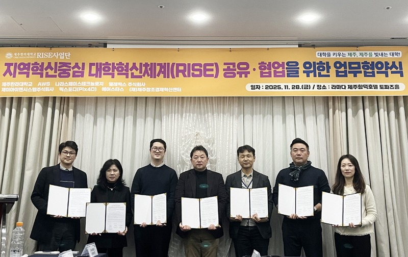 이번 컨소시엄 협약은 제주한라대학교 지역혁신중심 대학지원체계(RISE) 사업과 연계해 제주센터와 나라스페이스, 텔레픽스, 제이아이엔시스템, 픽스포디(Pix4D), 에어스타스 등 총 7개 대학·기관·기업이 참여했다.