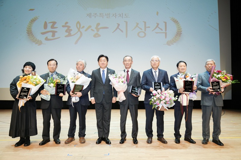문화상 수상자들에게 축하의 뜻을 전했다. 오 지사는 “오늘 수상자들은 문화헌장의 가치와 비전을 몸소 실천해 온 분들”이라며 “수상자를 비롯한 많은 분들과 함께 변화하는 세계에 능동적으로 대응하며 제주 문화 발전을 이끌어 나가겠다”고 말했다.