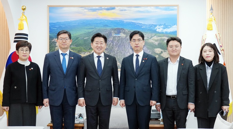 오영훈 도지사는 지난 19일 오후, 과거사 치유 지원 현황 점검을 위해 제주를 찾은 김민재 행정안전부 차관을 만나 주요 현안 과제 해결과 상반기 특별교부세 지원을 요청했다.