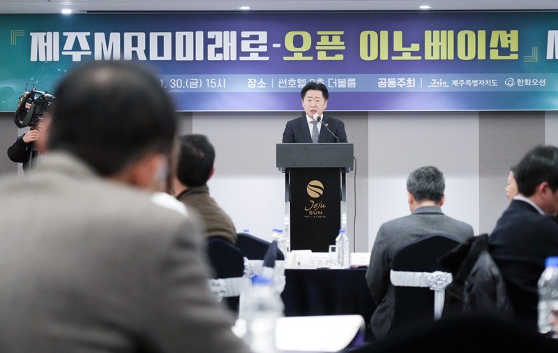 제주도는 지난 30일 오후 제주시 썬호텔에서 한화오션과 공동으로 ‘제주 MRO 미래로–오픈 이노베이션 세미나’를 개최했다.