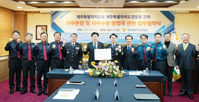 이어 “제주가 만들어 온 사무분담과 자치경찰 영역 확대 경험이 국가 차원의 자치경찰제 이원화 모델과 기준이 될 수 있는 시점”이라며 “이번 협약을 계기로 자치경찰제가 전면 도입되고, 제주가 걸어온 자치경찰의 길이 다시 한번 빛나기를 기대한다”고 밝혔다.
