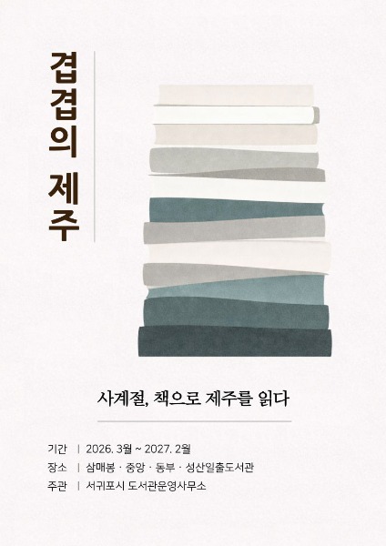 제주 서귀포시가 책을 통해 제주의 진짜 이야기를 들여다보는 연중 도서 전시 ‘겹겹의 제주 – 사계절, 책으로 제주를 읽다’를 오는 3월부터 운영한다.