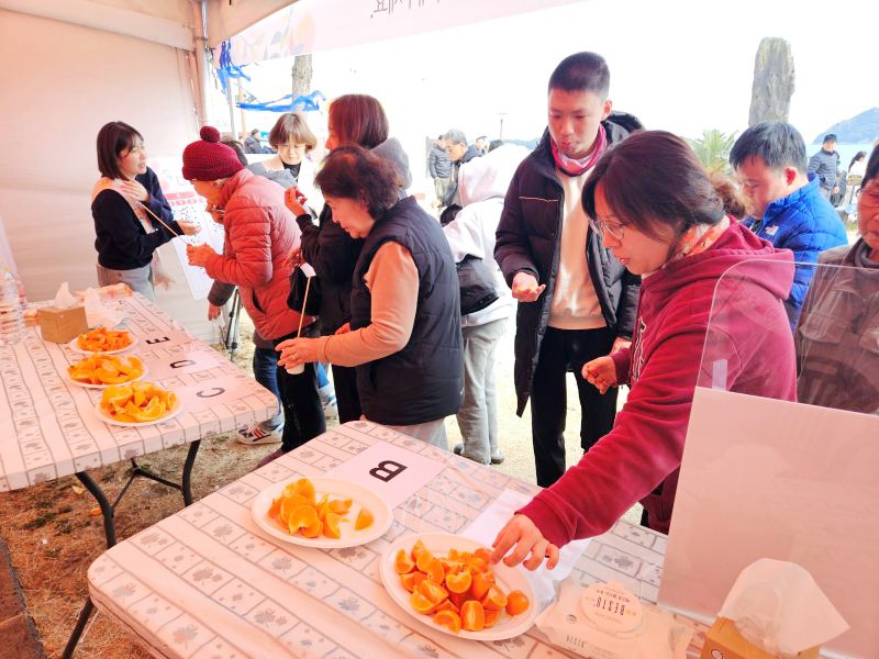 평가회는 모든 품종을 A부터 E로 구분해 품종명을 공개하지 않는 블라인드 테스트 방식으로 진행되었는데 참여자는 5개 품종을 모두 시식한 뒤 선호 품종 2개와 선호 사유(맛·식감·향)를 선택해 선입견을 최소화한 상태에서 감귤의 핵심 품질에 대한 객관적 평가가 이뤄졌다.
