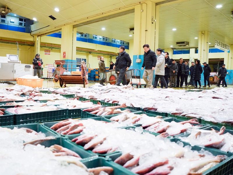 제주도가 설 명절을 앞둔 9일 새벽 제주시 한림수산업협동조합 위판장에서 어업인들을 격려하고 수산 현장의 애로사항을 청취했다.