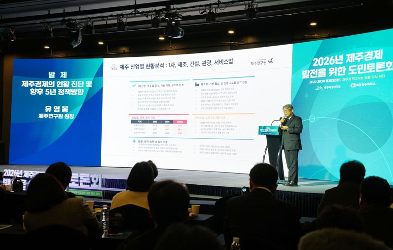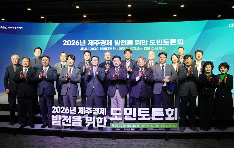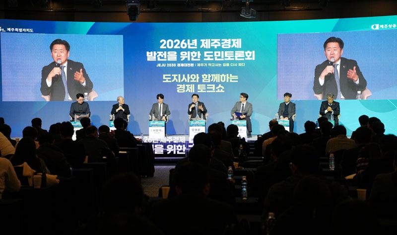 제주도와 제주상공회의소는 지난 9일 오후 한라컨벤션센터에서 ‘2026년 제주경제 발전을 위한 도민토론회’를 열었다.