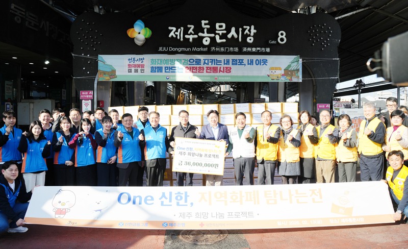 제주도와 제주은행, 신한금융그룹, 대한적십자사 제주지사는 13일 오후, 제주동문시장에서 설맞이 ‘ONE 신한 지역화폐 제주 희망 나눔 프로젝트’를 진행했다.