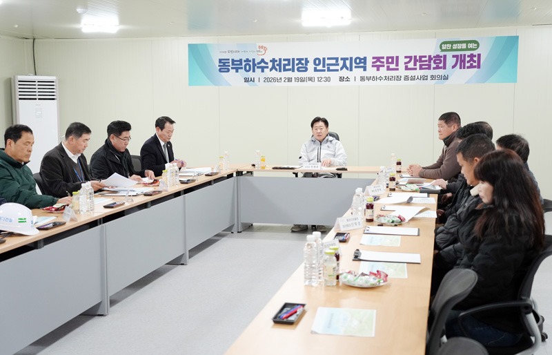 오영훈 제주도지사가 지난 19일 구좌읍 월정리 동부(월정)하수처리장 증설 현장을 직접 찾아 공정 현황을 살피고, 지역 주민들과 마주 앉아 그간의 협조에 감사를 전했다.