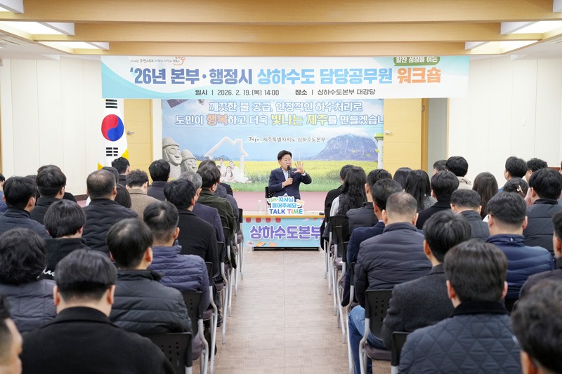 현장 행보를 마친 오 지사는 상하수도본부 대강당에서 열린 ‘2026년 본부·행정시 상하수도 담당 공무원 워크숍’에 참석해 실무자들을 격려했다.