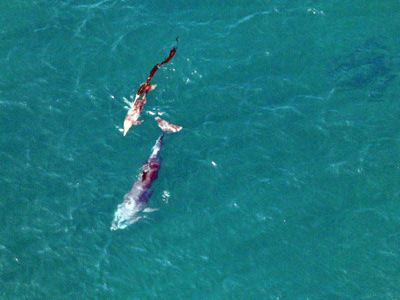 핫핑크돌핀스, 대정읍 앞바다서 촬영에 성공... 해조류 붙은 폐어구가 잡아당겨