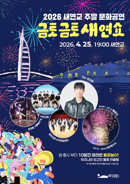 제주 서귀포시 대표 야간관광이벤트인 ‘금토금토 새연쇼’의 개막공연이 오는 25일 새연교 일원에서 개최된다. 개막일이 바로 앞으로 다가오면서 시민들과 관광객, 지역상인들의 관심이 높아지고 있다.